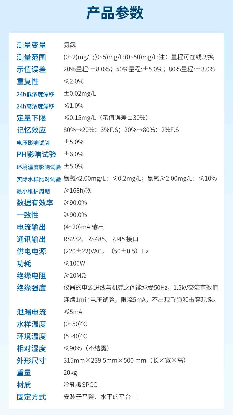 产品名称:联测_NH3N 型氨氮水质在线分析_试剂消耗量小,双光路式检测,支持USB、TF卡、IPv4网络