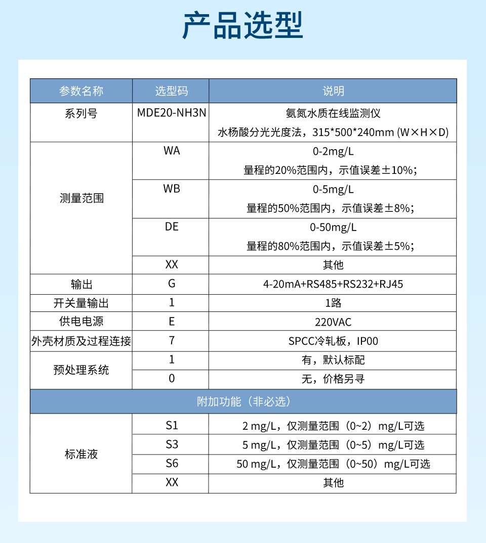 产品描述:NH3N 型氨氮水质在线分析仪采用水杨酸分光光度法检测,符合《氨氮水质在线自动监测仪技术要求及检测方法》(HJ 101)、《水质 氨氮的测定 水杨酸分光光度法》(HJ 536)、《污染物在线自动监控(监测)系统数据传输标准》(HJ 212)、《地表水自动监测仪器通信协议技术规定》等标准和规范的要求。