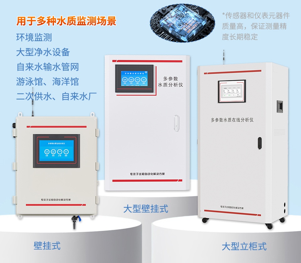 产品描述:多参数水质在线分析仪是本公司自主研发制造的新一代饮用水水质监测设备,该设备可广泛用于城市或村镇自来水厂、自来水输水管网、自来水二次供水、用户末梢、室内游泳池、大型净水设备和直饮水等水质在线监测,是水厂生产过程控制、水利水务管理、卫生监督等领域必不可少的在线分析设备。