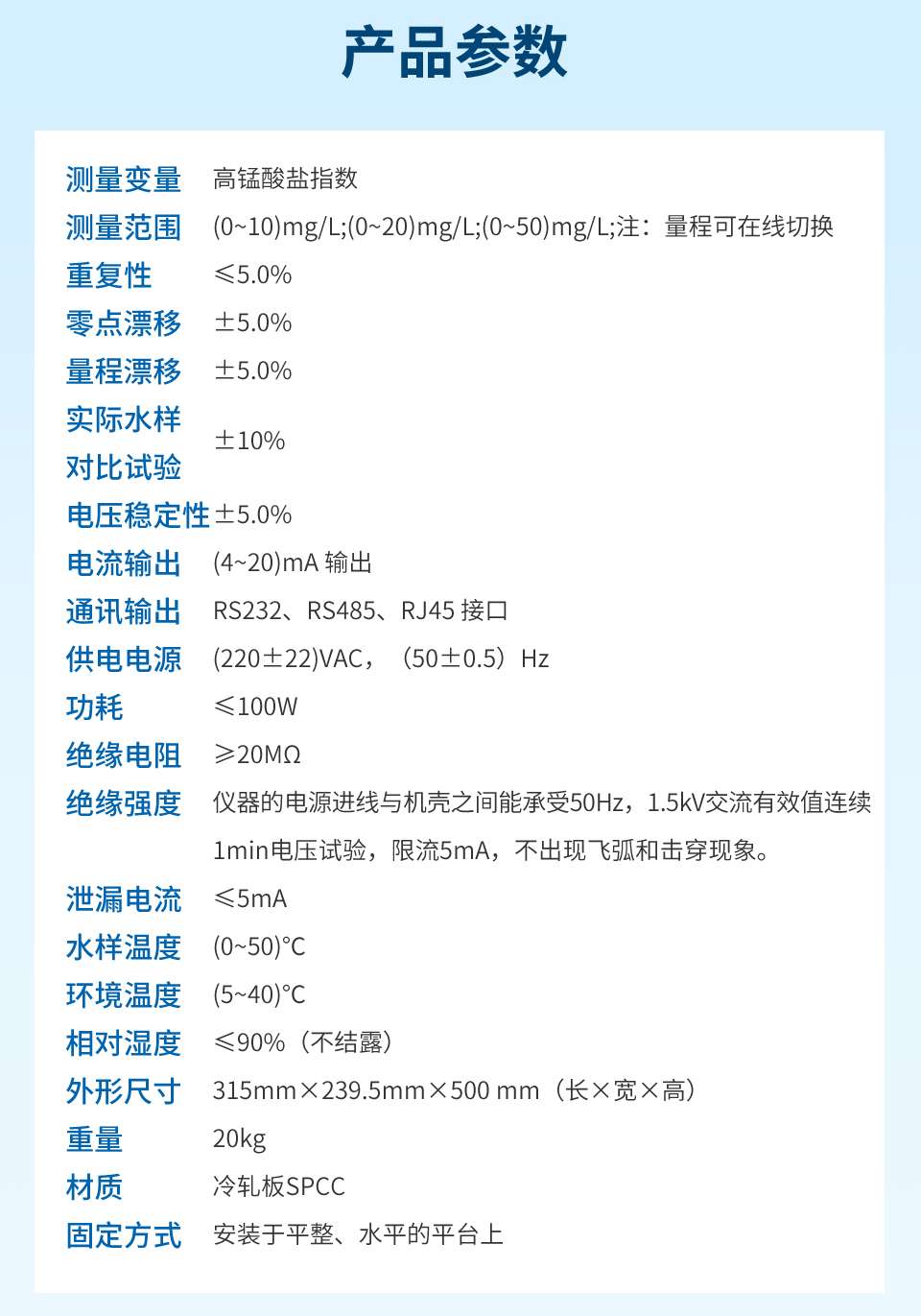 产品名称:联测_IMN型高锰酸盐指数水质在线分析_试剂消耗量小,双光路式检测,支持USB、TF卡、IPv4网络