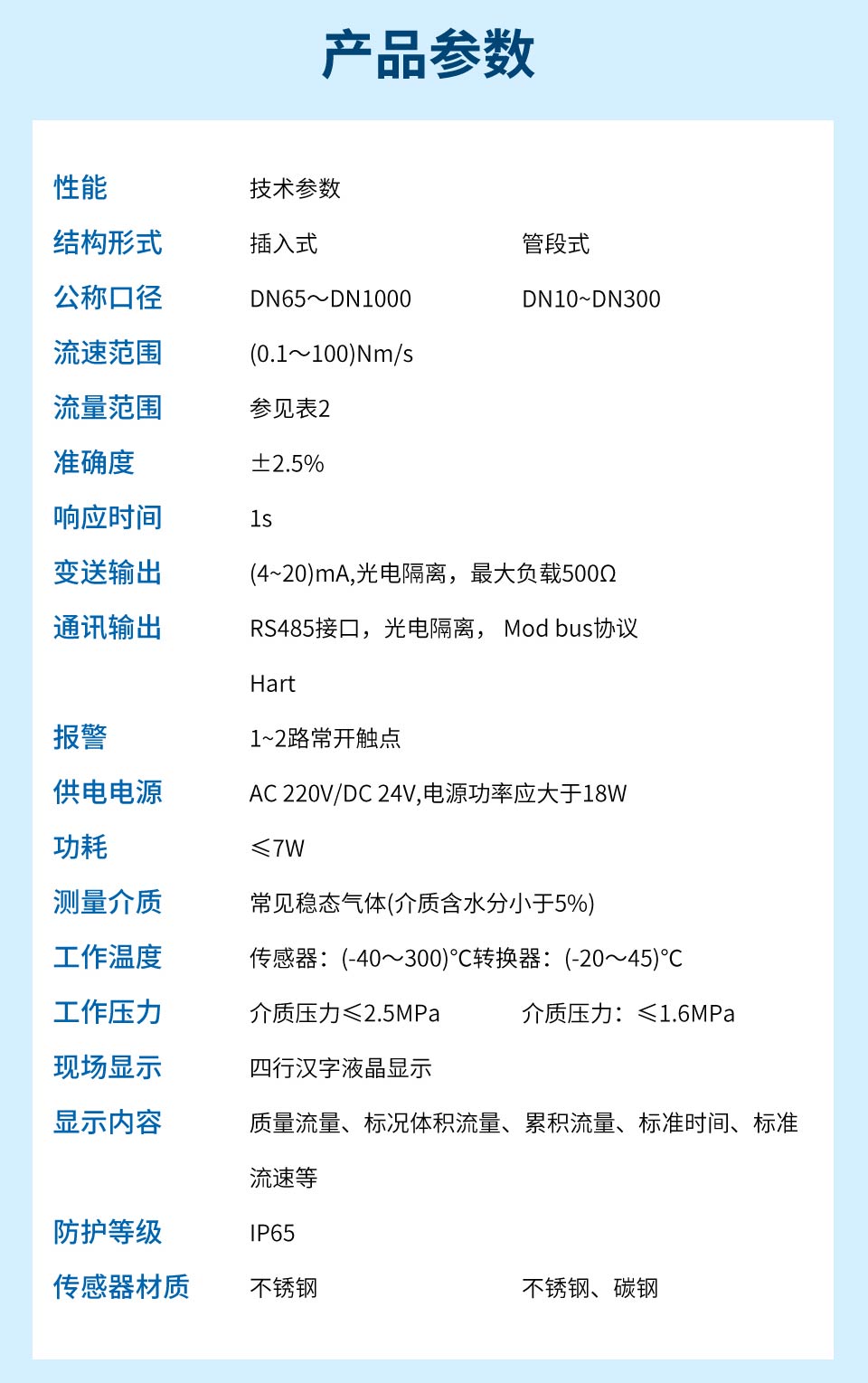 产品名称:联测_SIN-MF_热式气体质量流量计 法兰式安装_蒸汽/压缩空气等_