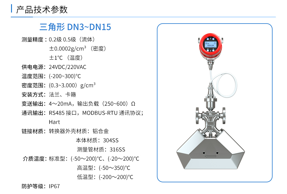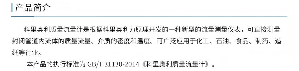产品名称:可测封闭管道内流体的质量流量