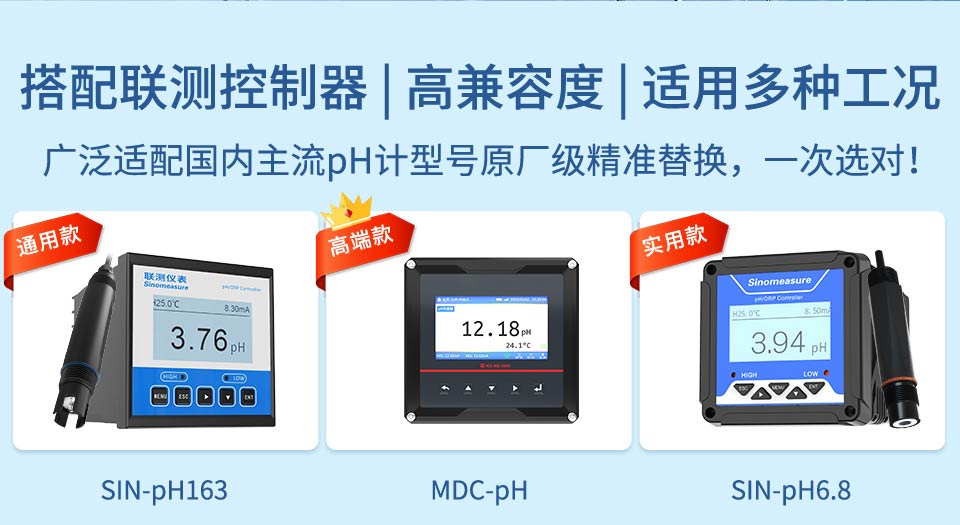 产品描述:pH 电极测量原理为电化学法,原电池原理。原电池是一个系统,它的作用是使化学能量转成为电能。此电池的电压被称为电动势(EMF)。此电动势(EMF)由二个半电池构成。其中一个半电池称作测量电池,它的电位与特定的离子活度有关;另一个半电池为参比半电池,通常称作参比电极,它一般是与测量溶液相通,并且与测量仪表相连。通过电极内部原电池反应产生的电势差,传递到 pH 控制器,对应算法变送显示 pH 值。