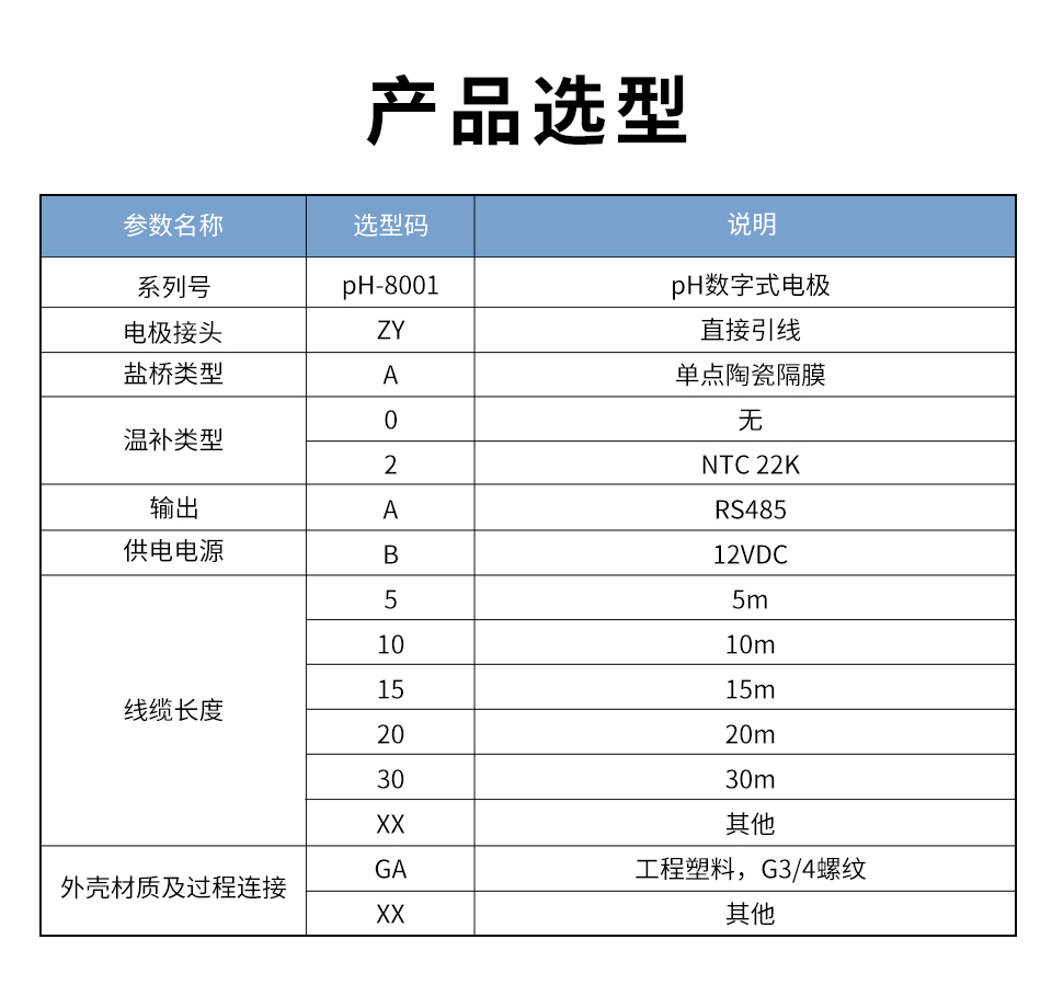 产品描述:本产品是我司针对养殖行业设计的 pH 数字传感器,带数字接口(RS485*1),可用于测量量程范围内水溶液体系中pH 值的变化情况,其带有标准 RS485 Modbus RTU 协议接口功能,可以与上位机进行远程通讯。