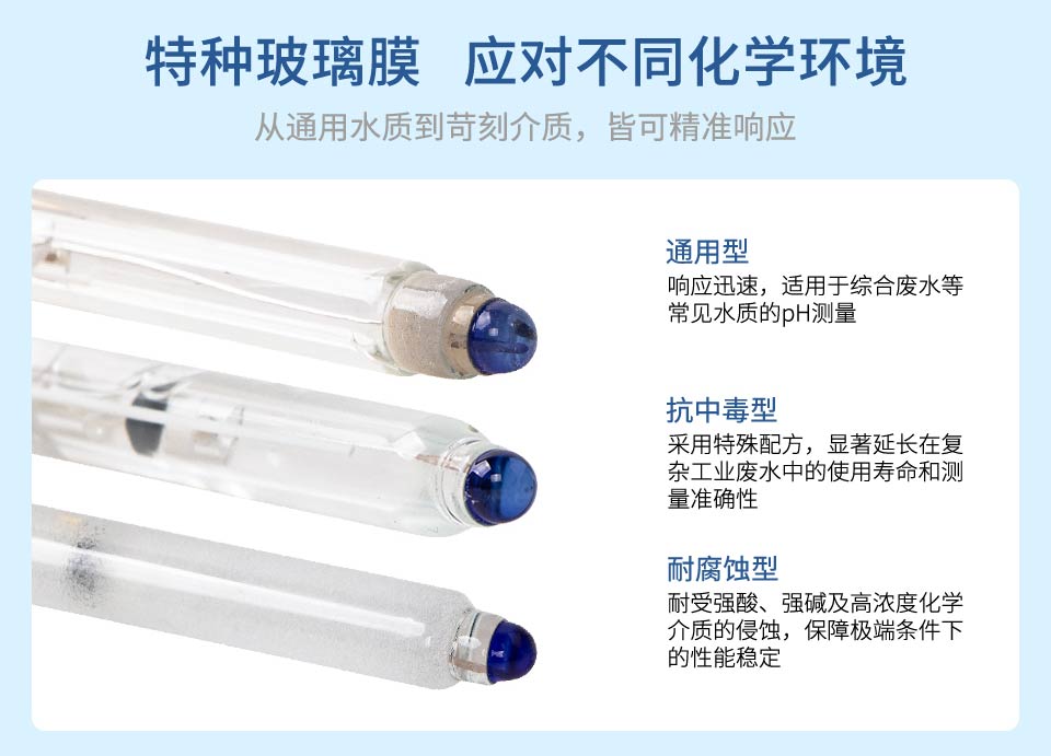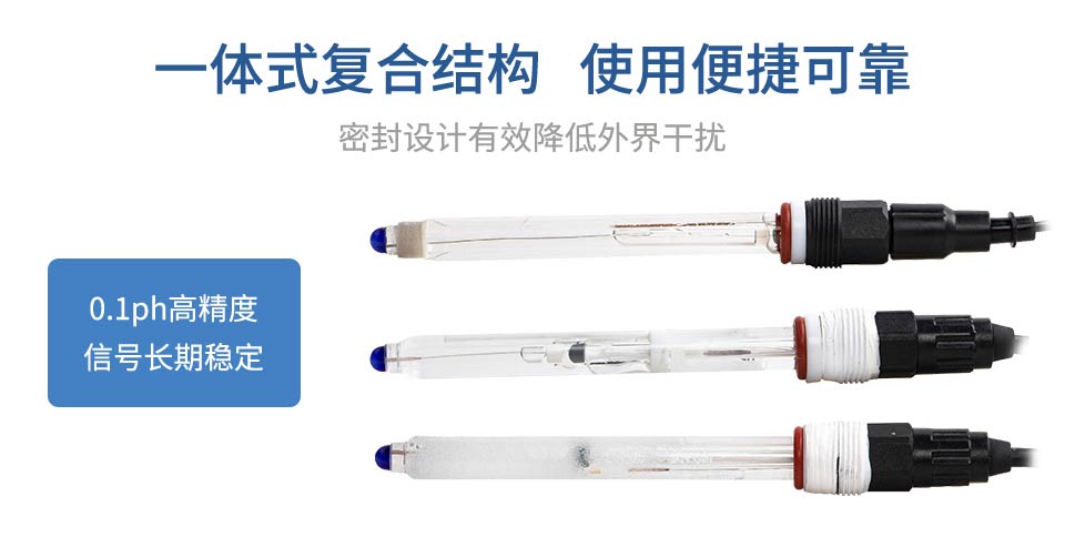 产品描述:pH 玻璃电极是由玻璃指示电极和银/氯化银参比电极组合在一起的复合电极,作为 pH 值测量传感器广泛应用于测量水溶液中的 pH 值。使用场景:自来水、地表水、综合废水等。