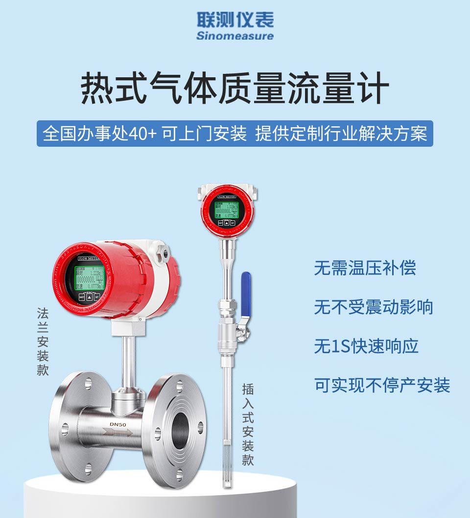 产品名称:联测_SIN-MF_热式气体质量流量计 法兰式安装_蒸汽/压缩空气等_