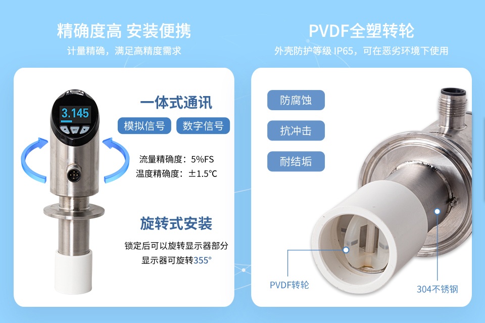 产品名称:转轮耐结垢、耐腐蚀;温度和流量一体式传感器