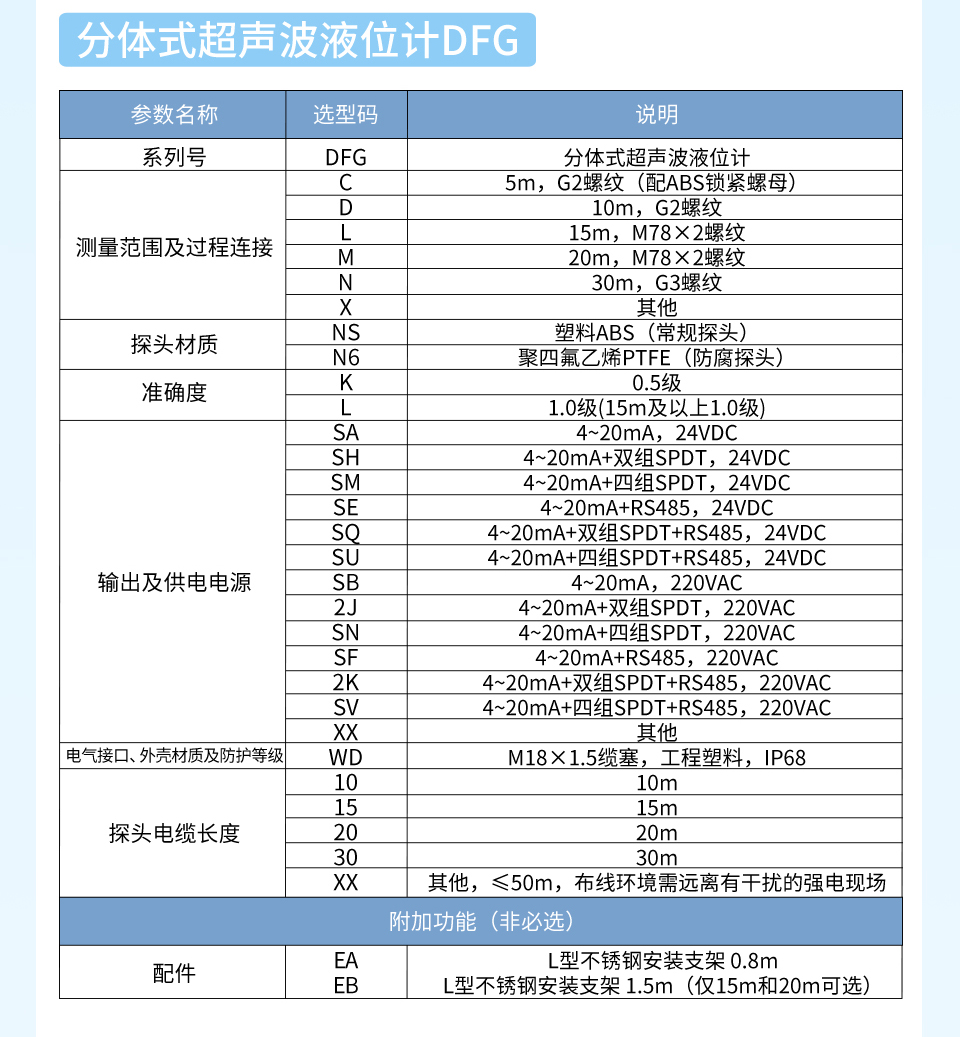 产品名称:联测_SIN-DFG_基础款_分体式超声波液位计/物位计/水位仪 污水 料位液位测量