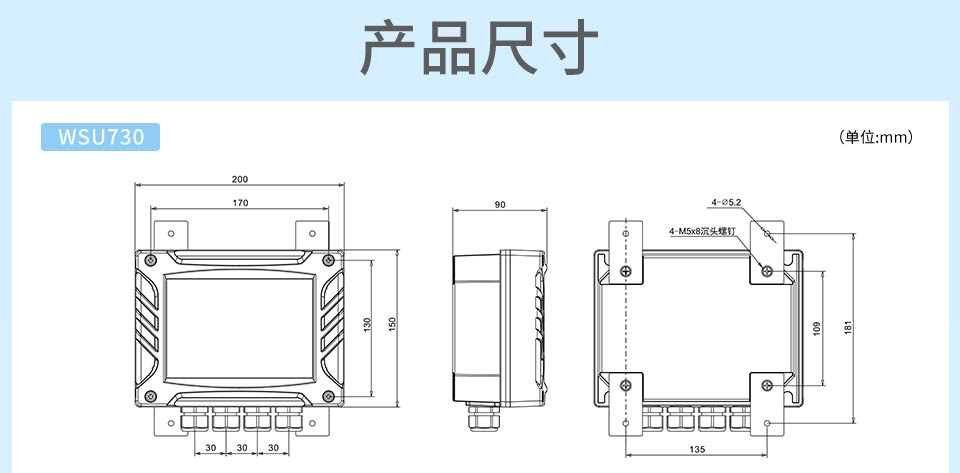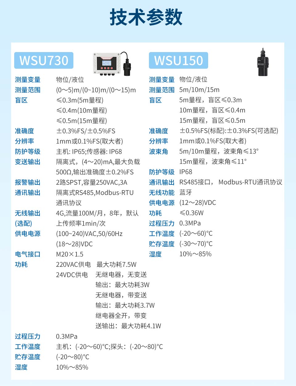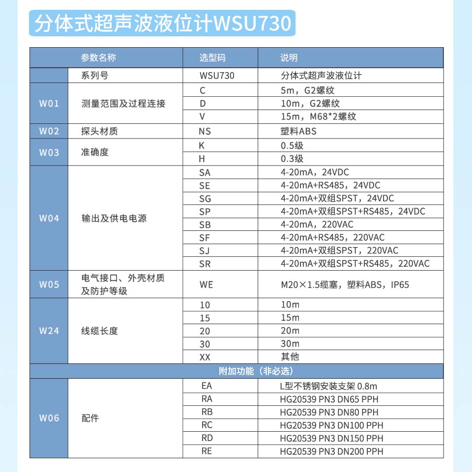 产品名称:WSU730分体式超声波液位计 _ 高集成度、无污染、非接触测量_